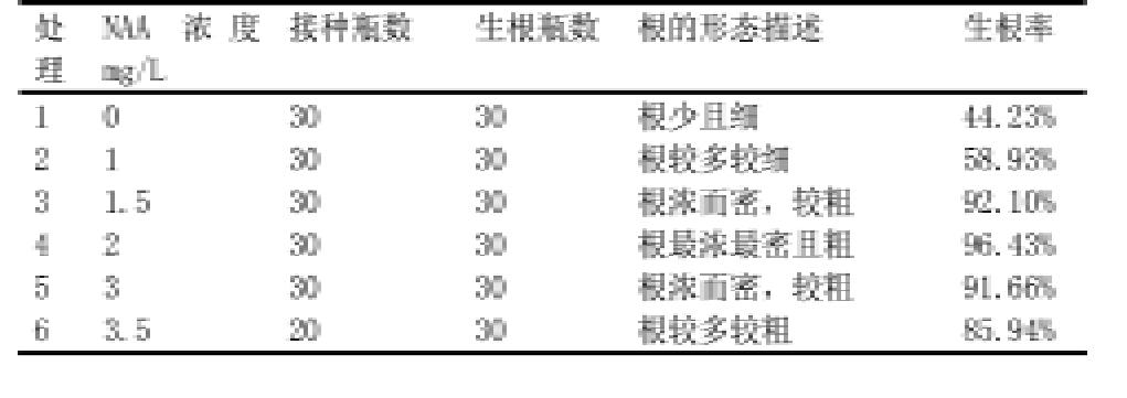 2.1.1.不同NAA濃度對云蔗99-601莖尖脫毒苗生根的影響列在表1。