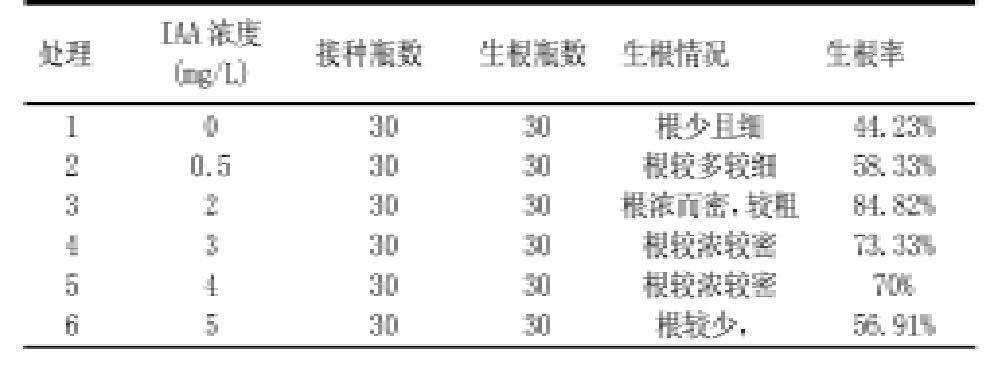 表2不同濃度的IAA對云蔗99-601莖尖脫毒苗生根的影響