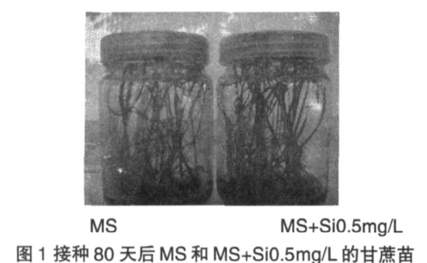 按保綠來看:接種80后天以MS+ Si0.5mg/L的效果最好,苗綠少,明顯地苗壯,與其它濃度對照差異非常明顯;